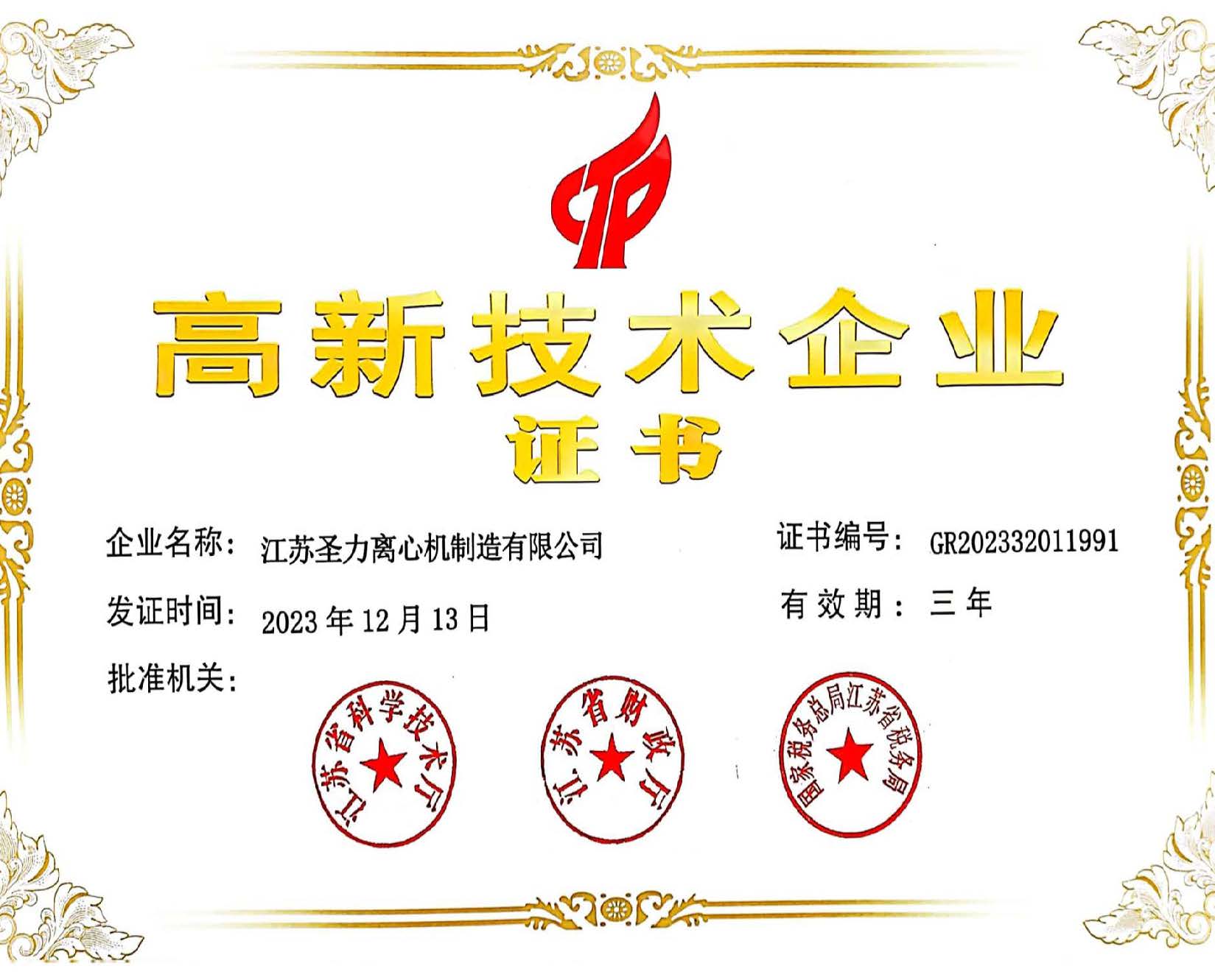 江蘇圣力離心機制造有限公司是國內分離機械行業中主要的離心機生產企業,對離心機的研究、設計、制造有多年的歷史,擁有齊全的設備、完善的檢測手段。公司已通過IS09000國際質量體系認證、ISO14001環境管理體系認證、ISO45001:2018職業健康安全管理體系認證和CE認證,是江蘇省高新技術企業,曾榮獲國家和地方多項榮譽稱號。